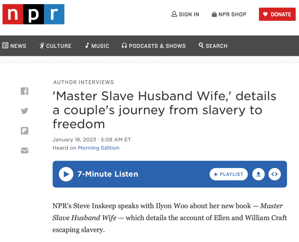“In this superbly researched and masterfully written book, Woo gives William and Ellen Craft’s story the detailed attention it so richly deserves.”